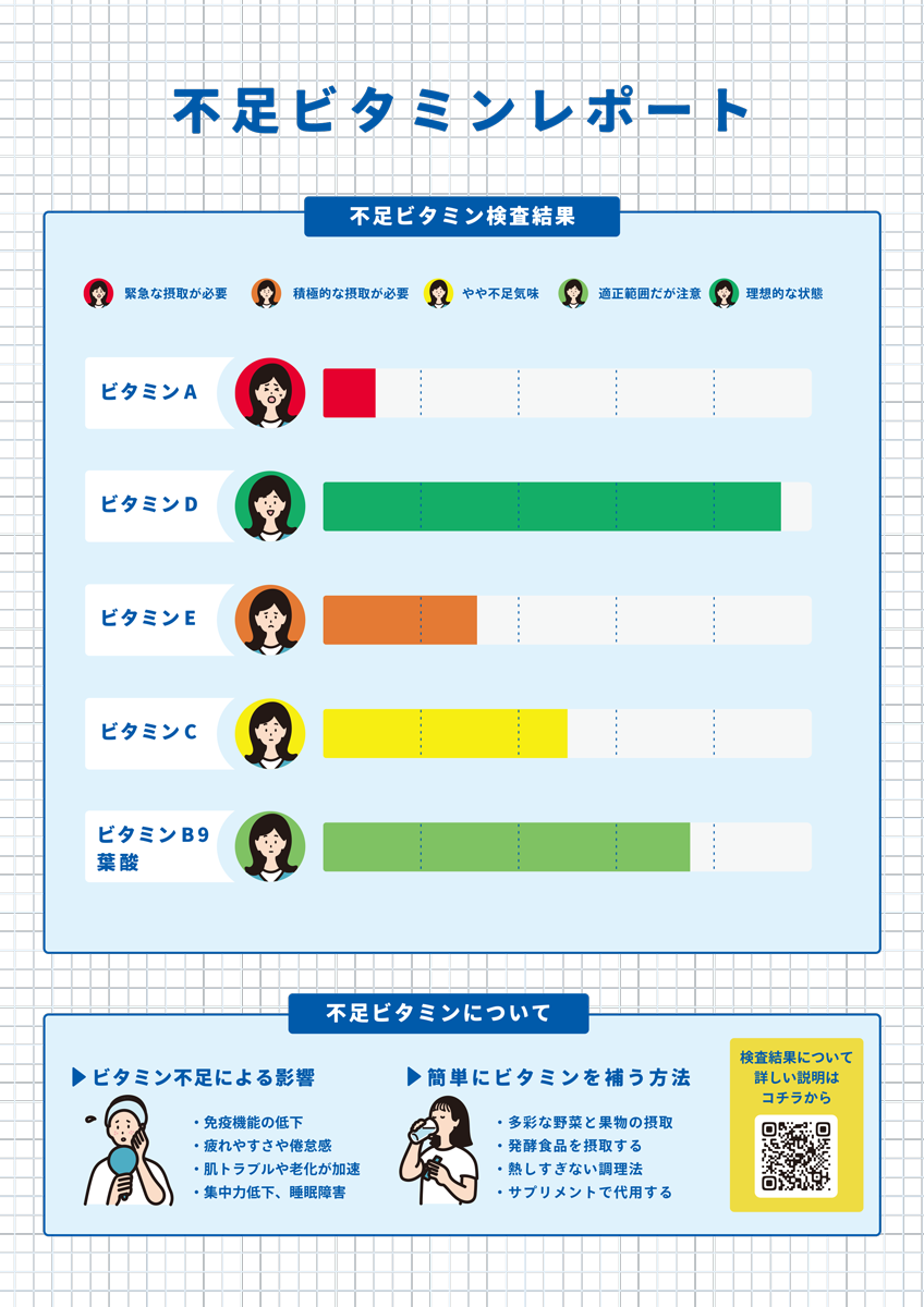 一見複雑で難しそうな検査結果のレポートを、デザインやイラストの力で親しみやすくフレンドリーな雰囲気にするというコンセプトのプロジェクト。デザイナーの迫田様には提供させていただいたイラストを使って素敵なデザインに仕上げていただきました。